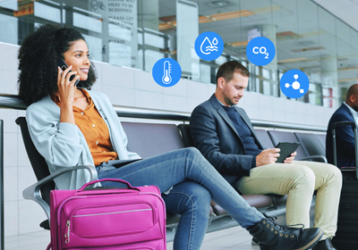 Monitoramento em tempo real da qualidade do ar (temperatura, umidade, CO2 e outros gases) garantindo conforto, segurança e conformidade nos terminais.